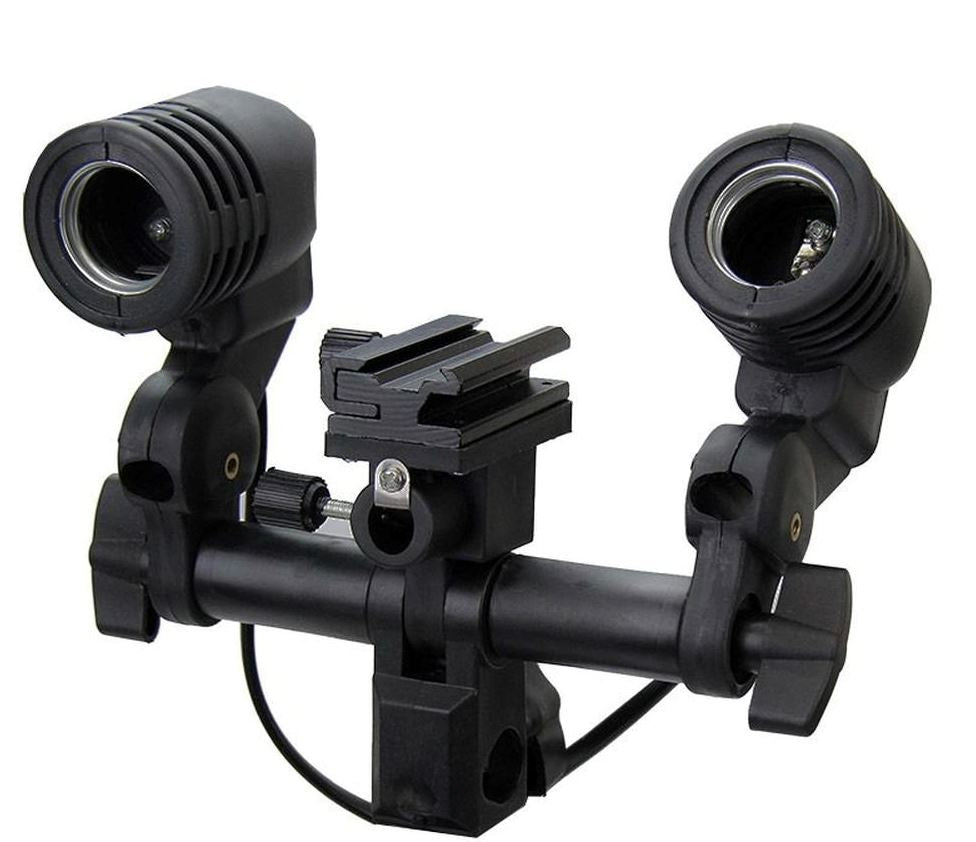 Indicado para acoplar uma sombrinha (refletora ou difusora) e uma lâmpada ou flash auxiliar E27.